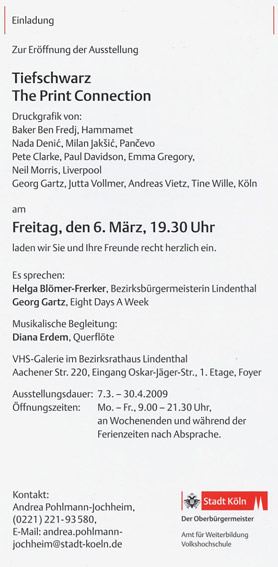 TiefSchwarz [Deep Black] a Printmaking exhibition in Köln, Pancèvo,